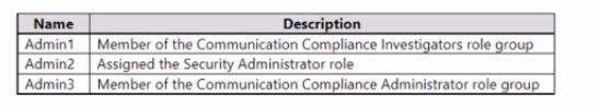 You have a Microsoft 365 E5 subscription that contains the administrators shown in the following table.
