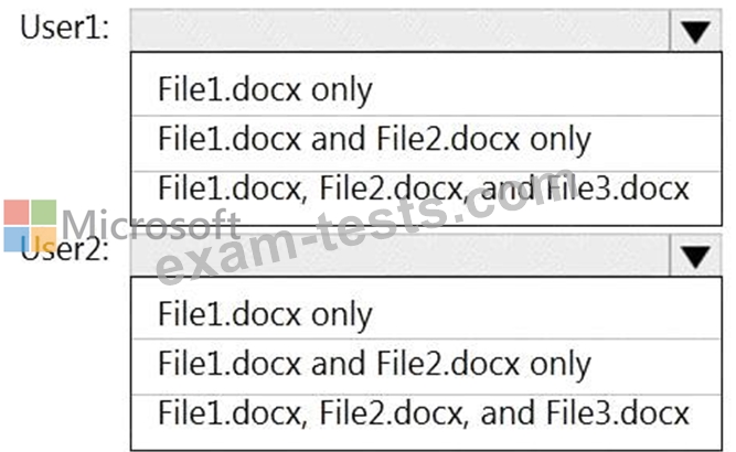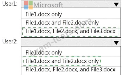Which files can User1 and User2 view? To answer, select the appropriate options in the answer area.