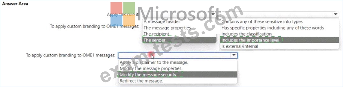 You need to create a Microsoft Exchange Online mail flow rule to apply 0ME1 to email.