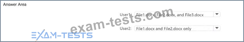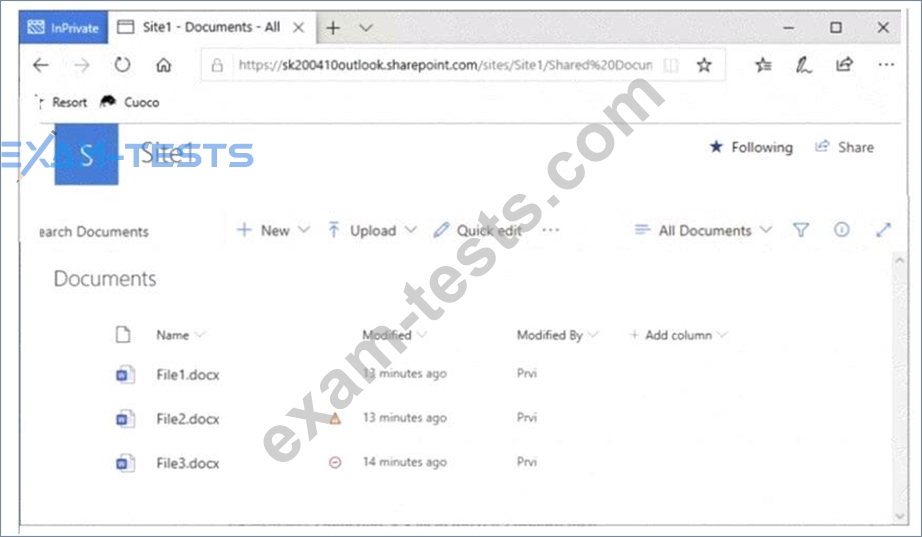 You have a Microsoft 365 E5 tenant that contains two users named User1, and User2 and a Microsoft SharePoint Online site named Site! as shown in the following exhibit.