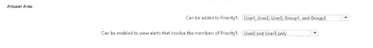 . Which users can be enabled to view alerts that involve the members of Priority1?