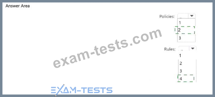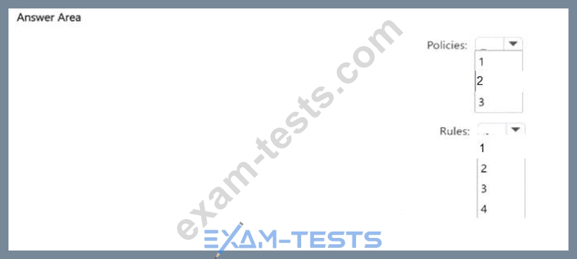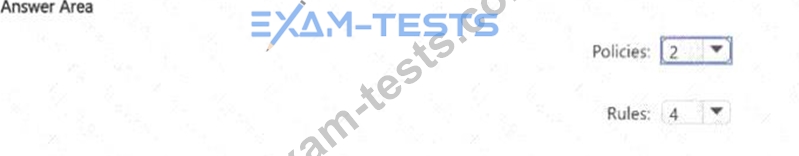 What is the minimum number of DLP policies and rules you must create to meet the requirements? To answer, select the appropriate options in the answer area.