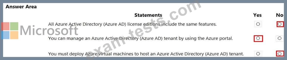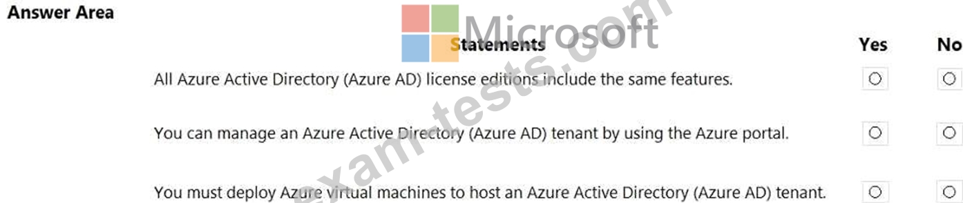 For each of the following statements, select Yes if the statement is true. Otherwise, select No.