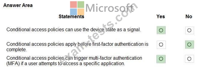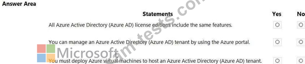For each of the following statements, select Yes if the statement is true. Otherwise, select No.