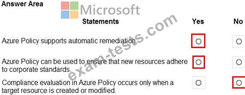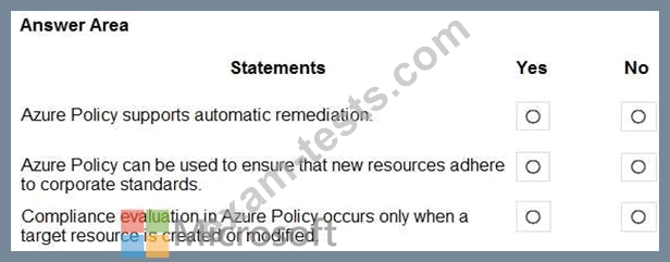 For each of the following statements, select Yes if the statement is true. Otherwise, select No.
