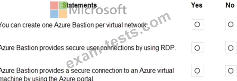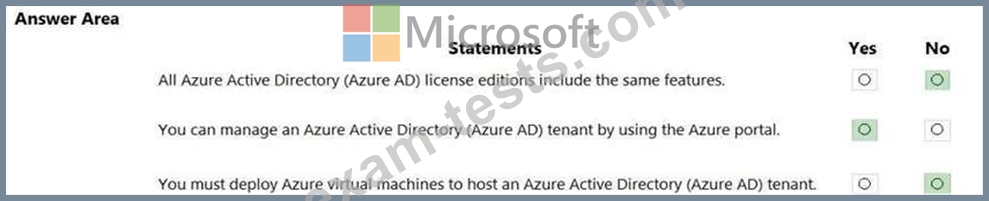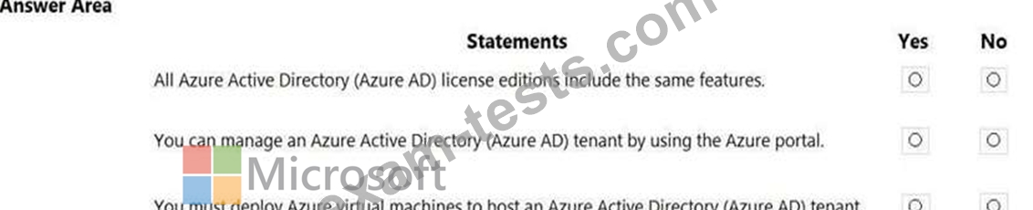 For each of the following statements, select Yes if the statement is true. Otherwise, select No.