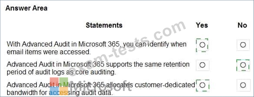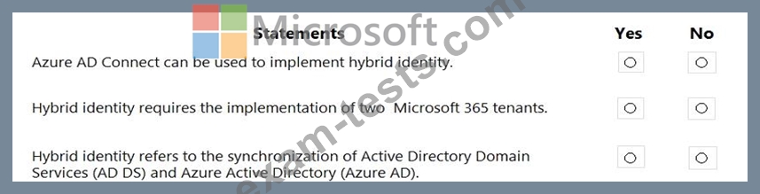For each of the following statements, select Yes if the statement is true. Otherwise, select No.