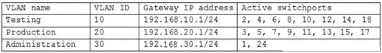 The network VLANs are configured as follows: