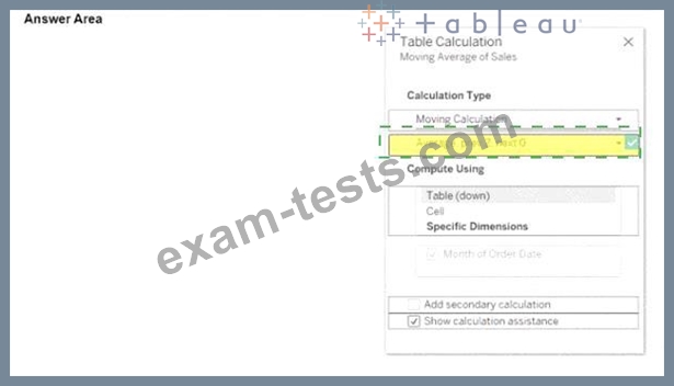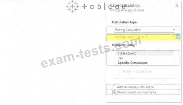 You use a quick table calculation lo calculate the moving average of a measure named Sales.