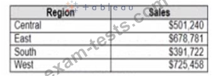 Which Level of Detail (LOD) expression should you use to calculate tie grand total of all the regions?