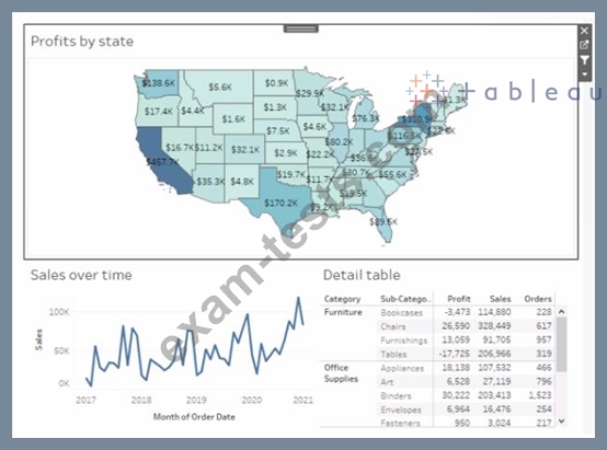 Add the Sales by State sheet in a Show/Hide button to the right side of the dashboard.