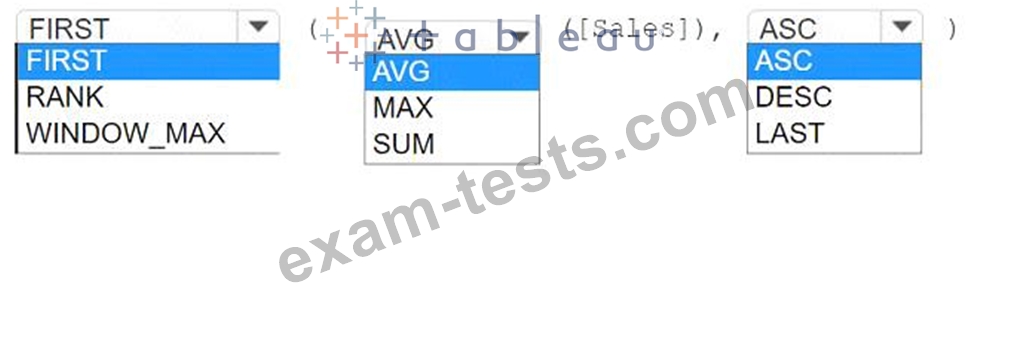 How should you complete the formula? (Use the dropdowns in the Answer Area to select the correct options to complete the formula.)