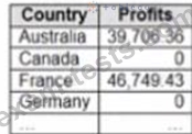 You have the following dataset that contain null values in the Profits field. You want the data to appear as shown in the following table. Which two formulas achieve the goal? Choose two.