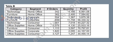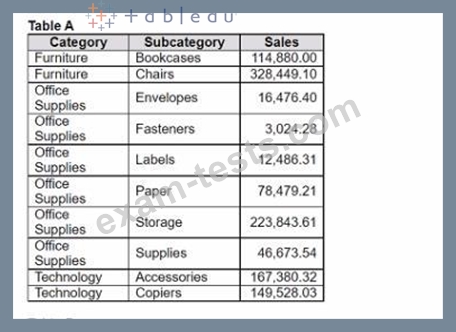 You have the following two tables. Table A is the primary table. Which type of join is established when a blend is created by using the join key of Category?