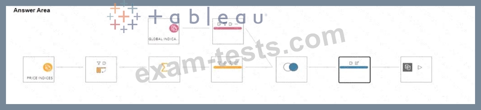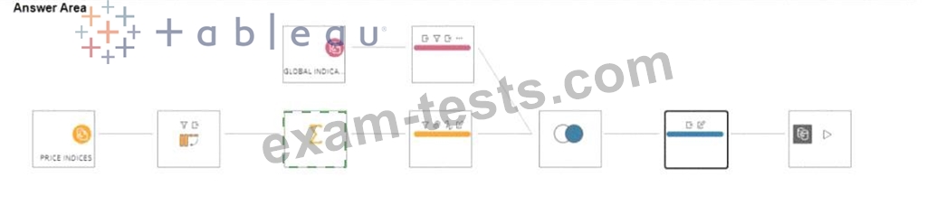 You have a Tableau Prep flow that joins a dataset named Global Indicators to a dataset named Price Indices.