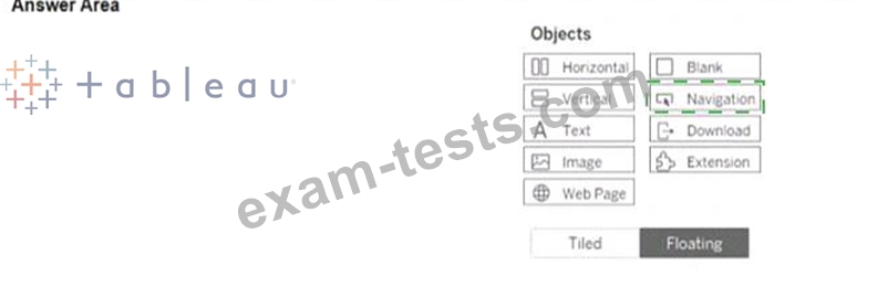 You want to add an object to the dashboard that users can click to switch to a different dashboard in the workbook.