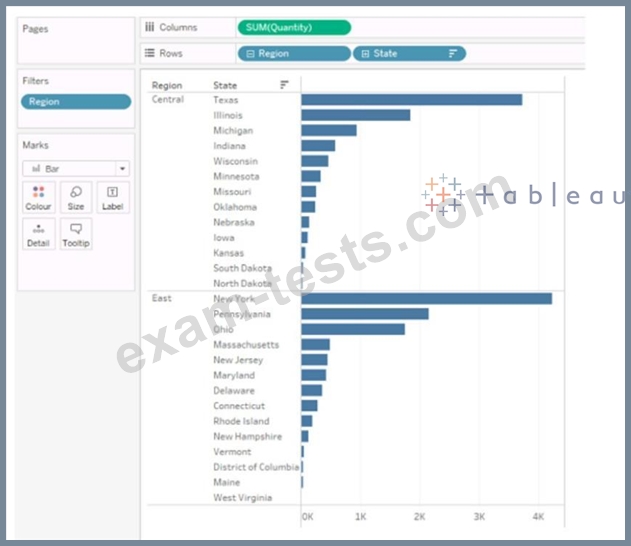 You have the following chart that sorts states by the number of products each state has purchased.