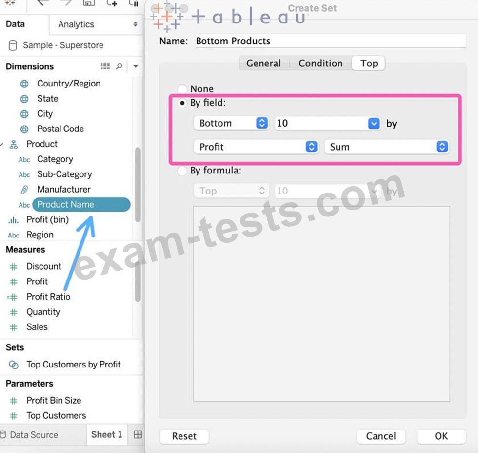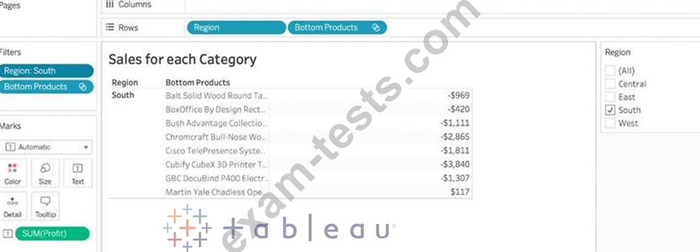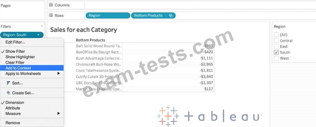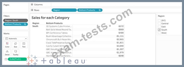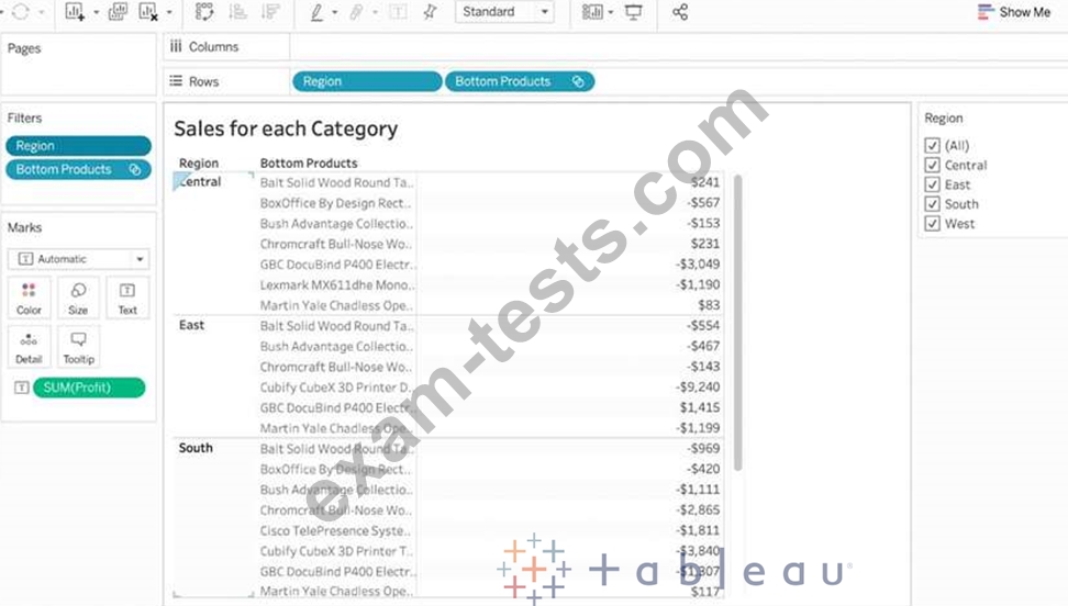 Our use case states that we need to create a set showing the Bottom 10 products by Profit in each Region. Which of the following filter types should you apply on Region?