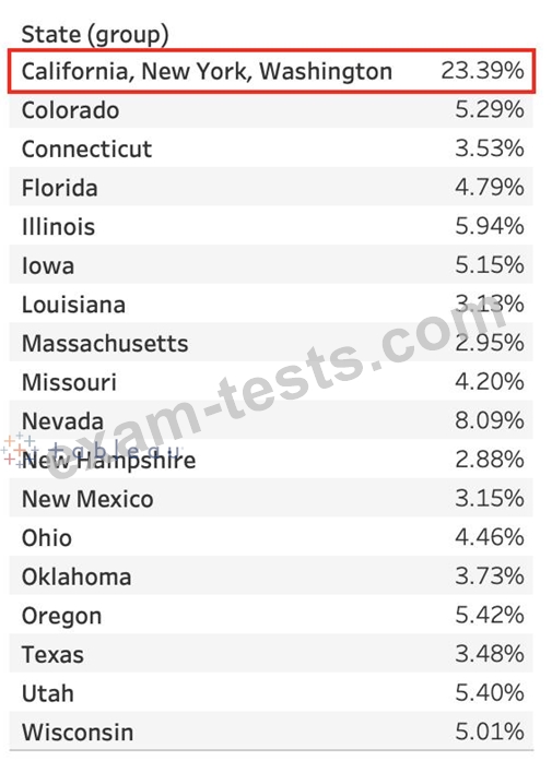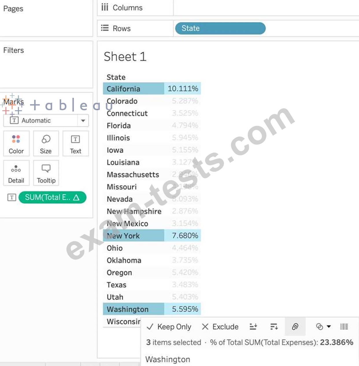 Using the CoffeeChain table, create a crosstab showing the Total Expenses per State and add Column Grand Totals to the view. Now group the states of New York, California and Washington. What percent of the total sales does this group contribute?