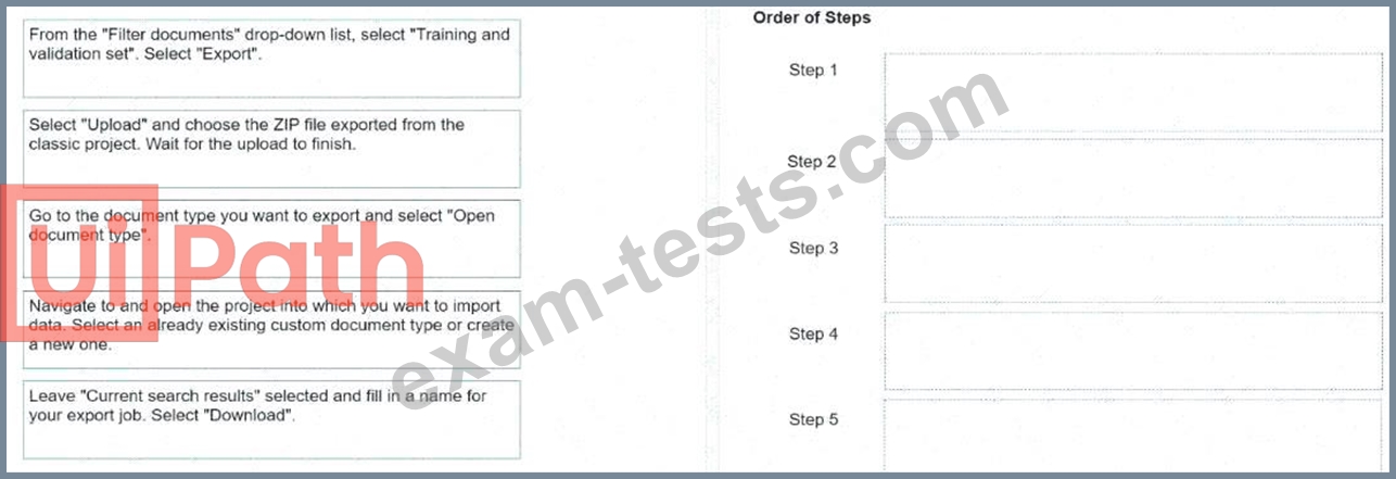 Drag the Description found on the left and drop on the correct Step found on the right.