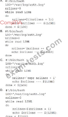 A user wants to list the lines of a log, adding a correlative number at the beginning of each line separated by a set of dashes from the actual message. Which of the following scripts will complete this task?