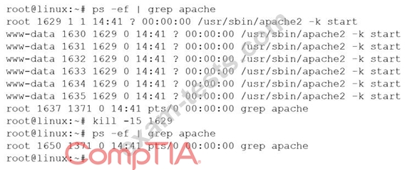 A systems administrator is editing a service file for the web server. In order to continue testing, all web server processes must be shut down. The administrator accomplishes this with the following commands: