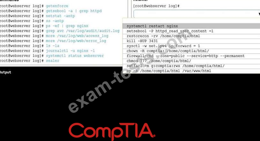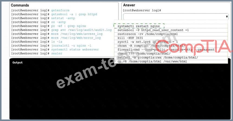 Review all the command output and select the command needed to remediate the issue.