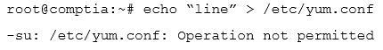 Ann, a junior systems administrator, is required to add a line to the /etc/yum.conf file. However, she receives the following error message when she tries to add the line: